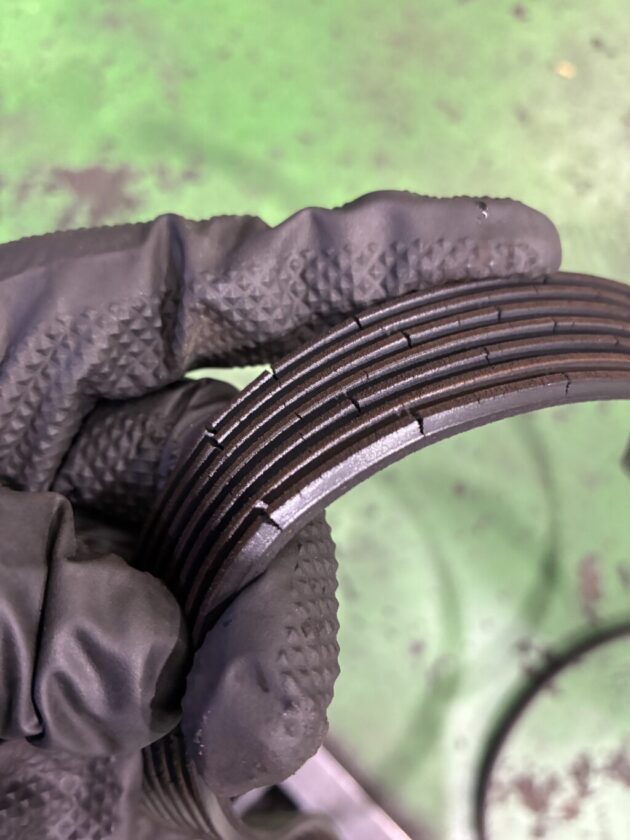このまま使用を続けると、ベルトの滑りによる異音や破断による走行不能に繋がる恐れがあるため、交換作業を行うこととなりました。